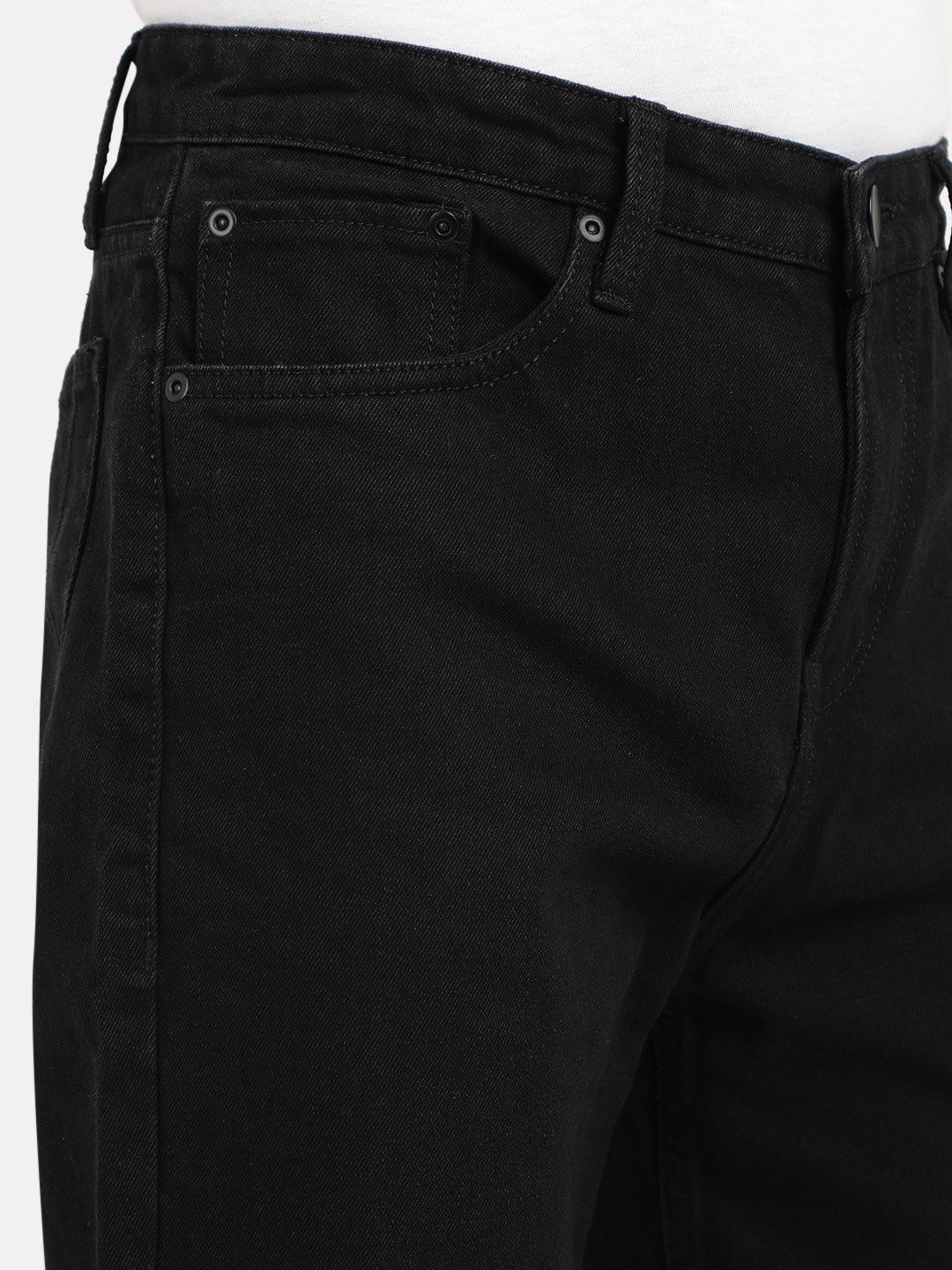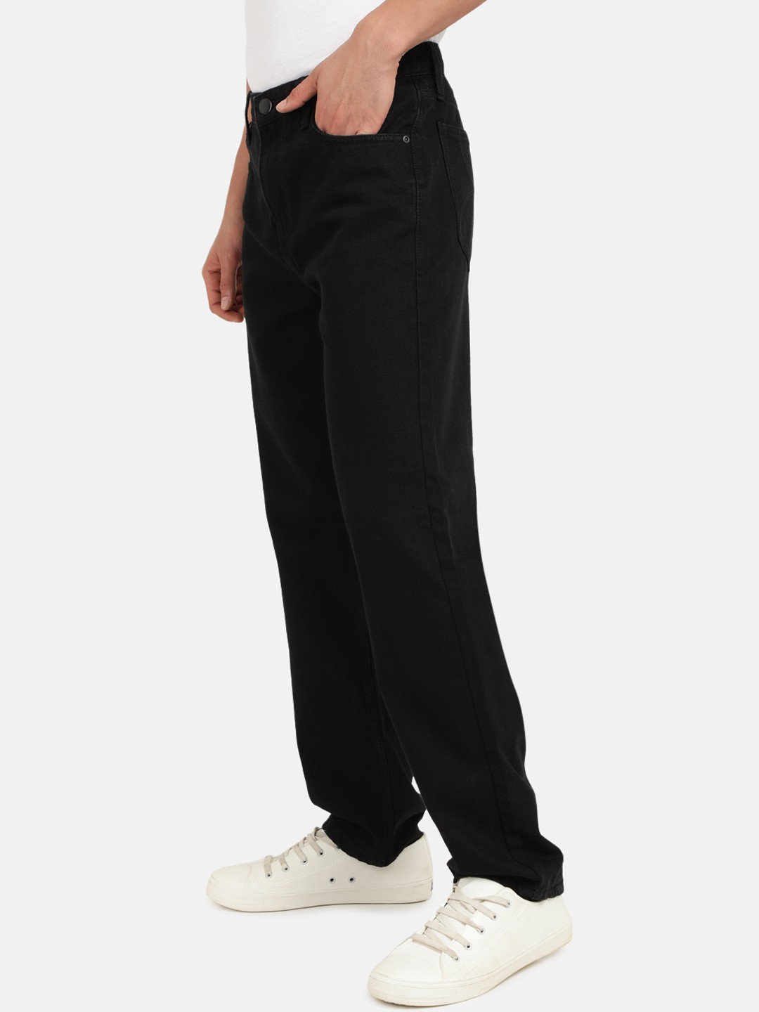 Step into timeless style with these dark shade, no-fade black jeans. Designed for those who appreciate a relaxed, laid-back aesthetic, these mid-rise, relaxed-fit jeans offer an effortlessly casual yet refined look. The clean finish and classic 5-pocket design make them a versatile wardrobe essential, perfect for pairing with a crisp white shirt or a rugged…