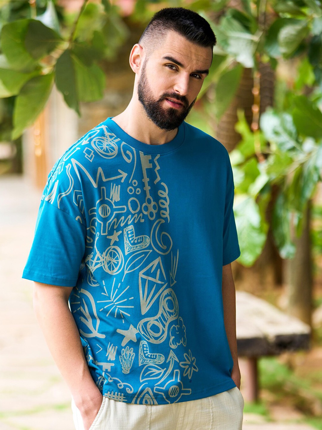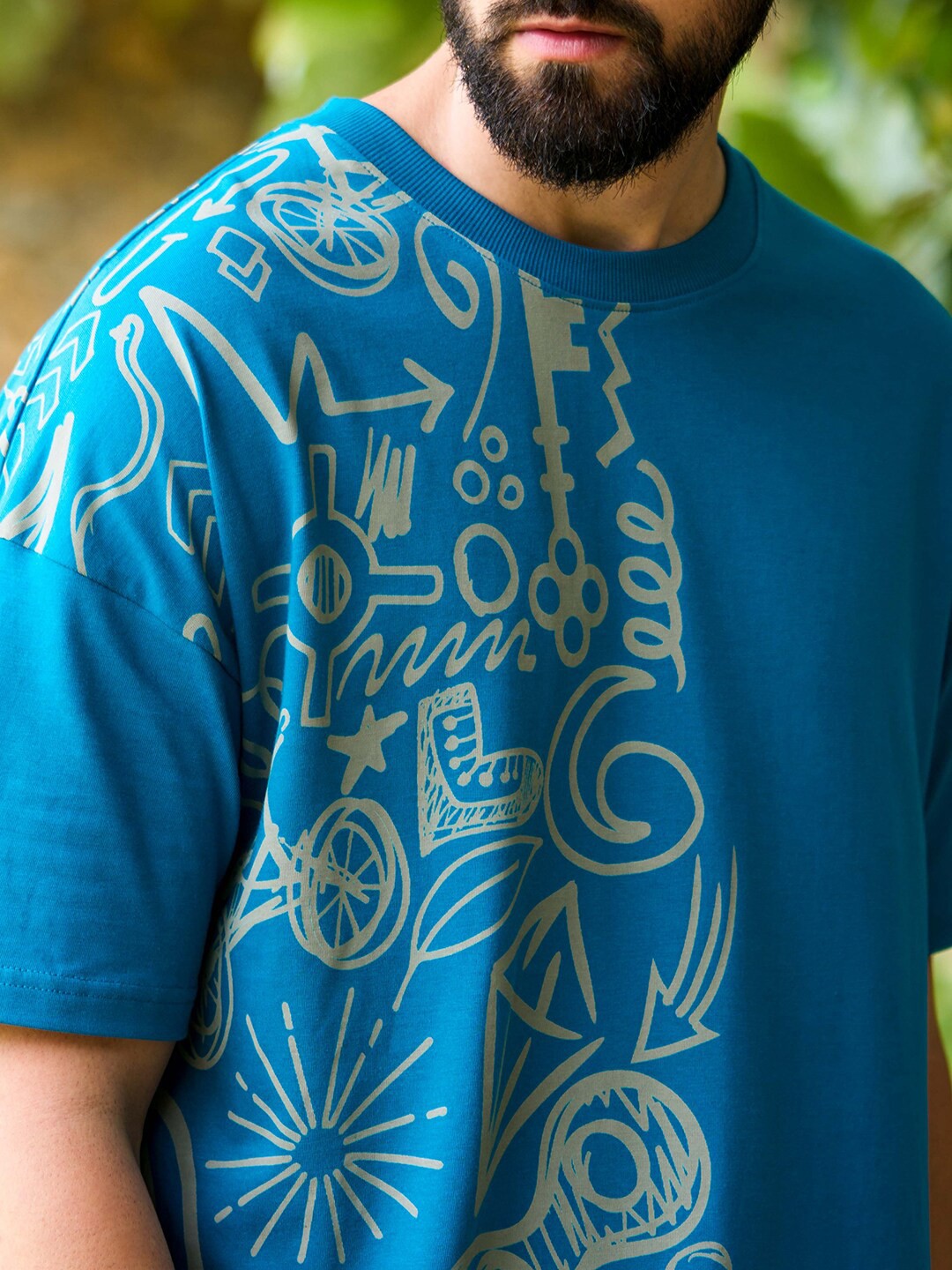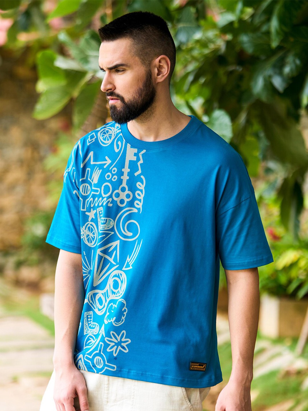 Make a statement with the Neon Chaos Oversized T-Shirt, featuring a bold graphic print in a striking blue & grey combination. Designed for a relaxed streetwear aesthetic, this drop-shoulder oversized fit ensures all-day comfort with 100% pure cotton fabric.